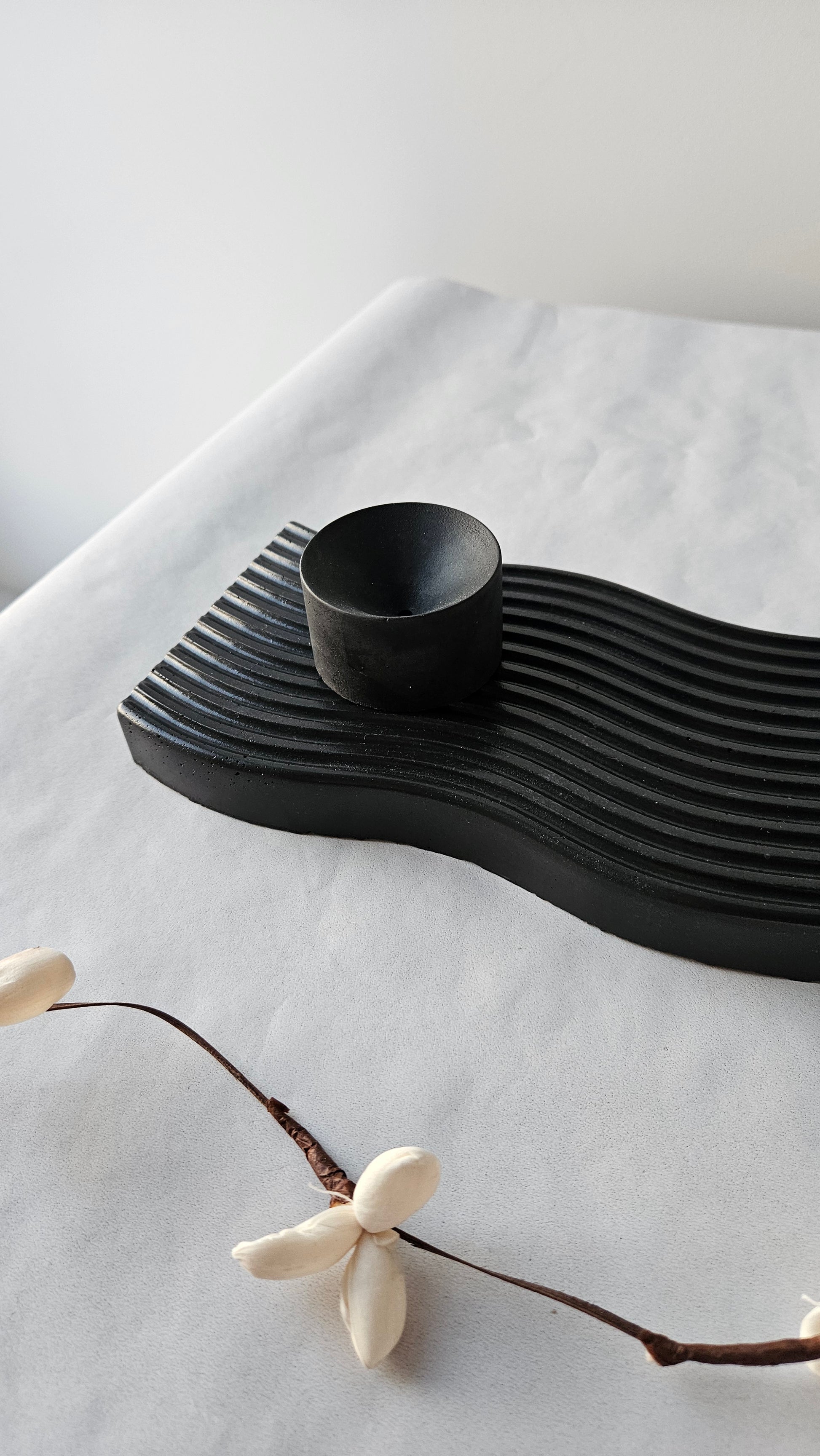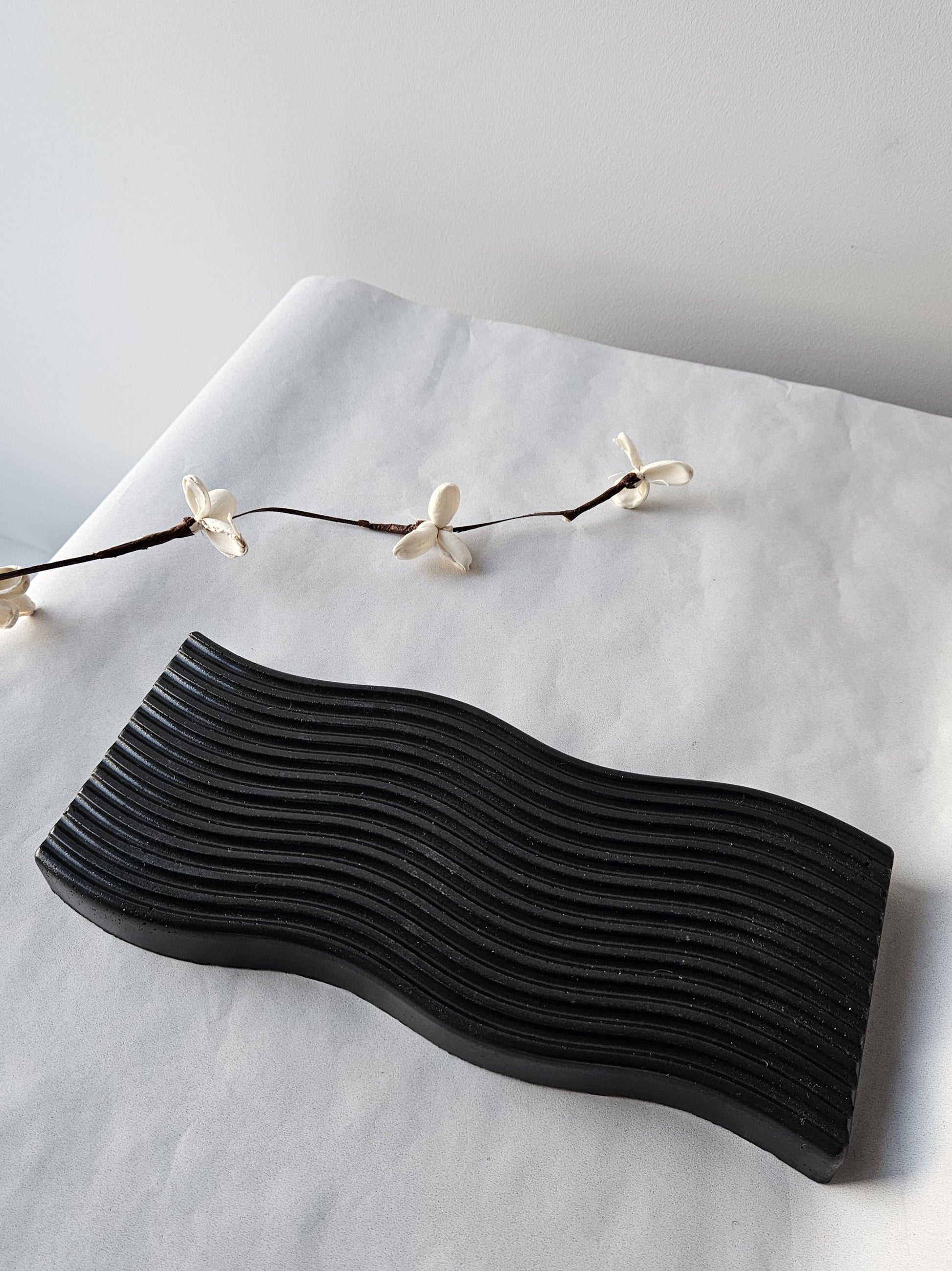 Padėklas dekoratyvus, todėl dailiai atrodys ir vienas. Tačiau gražiai dera ir su kitais gaminiais iš betono, pavyzdžiui, vazele Dunes.