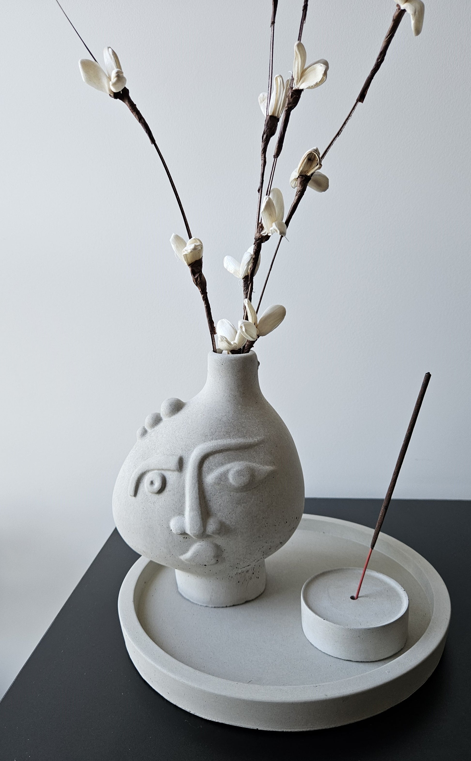 Rankų darbo betoninė vazelė Wabi-sabi – tai modernus, žvilgsnius traukiantis kūrinys namams, biurui, grožio salonui. Vazelės nuotaika – tarsi nuo pasaulio triukšmo atsiskyręs paprastumas, laiko tėkmės pėdsakų grožis.